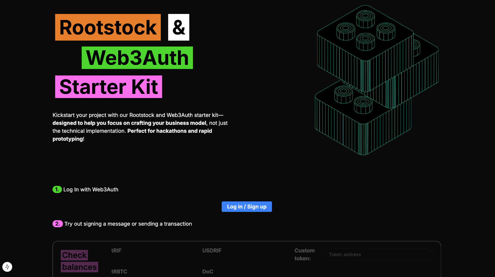 • You should see the Rootstock & Web3Auth Starter Kit welcome screen.