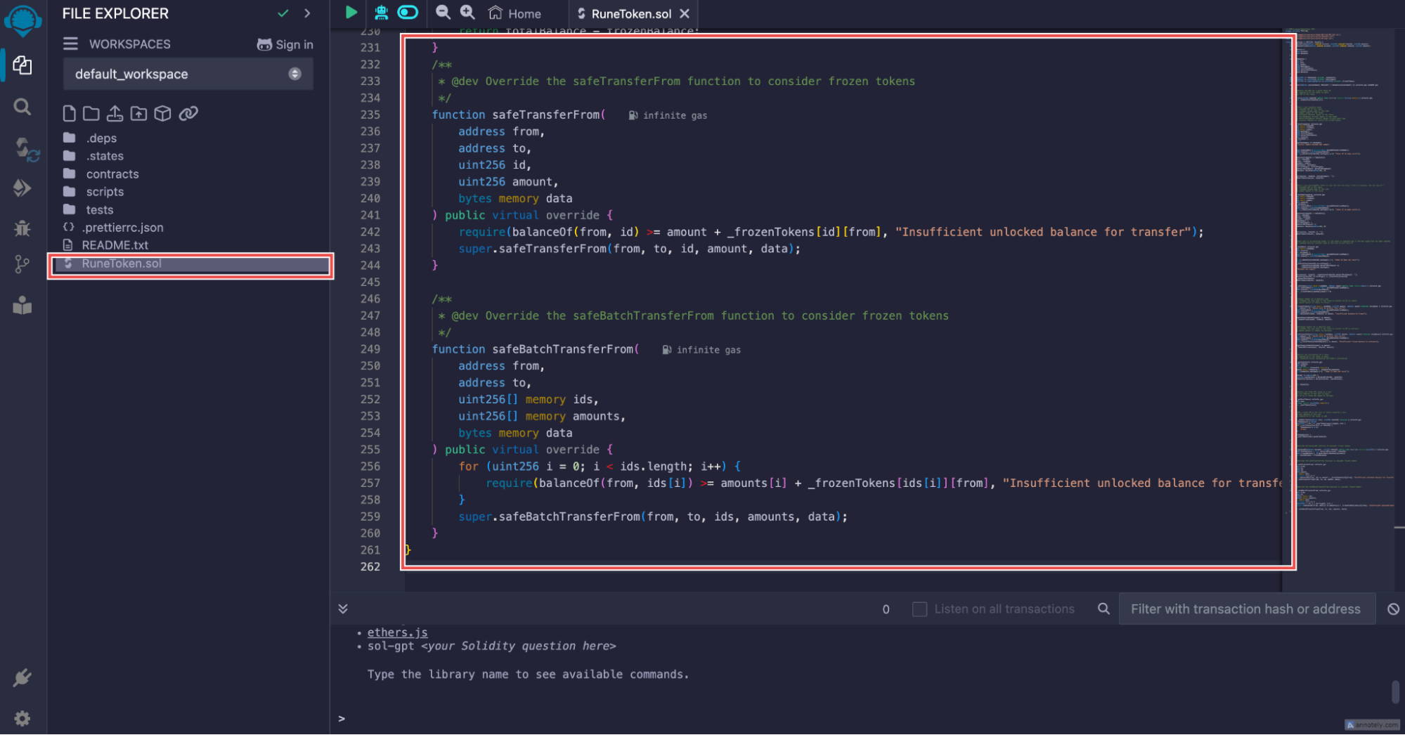 RuneToken.solfile in Remix IDE.