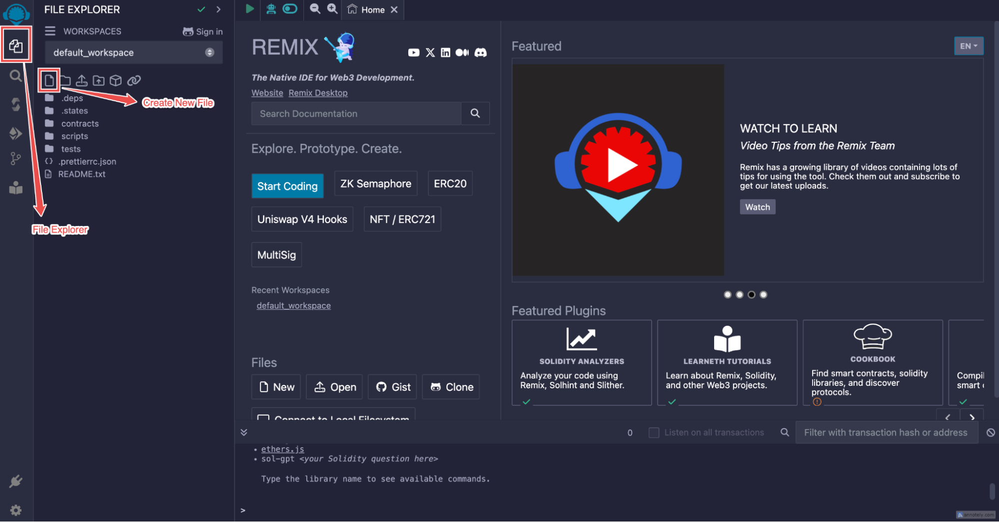 - In the Remix IDE, navigate to the File Explorer (the first icon on the left sidebar).
