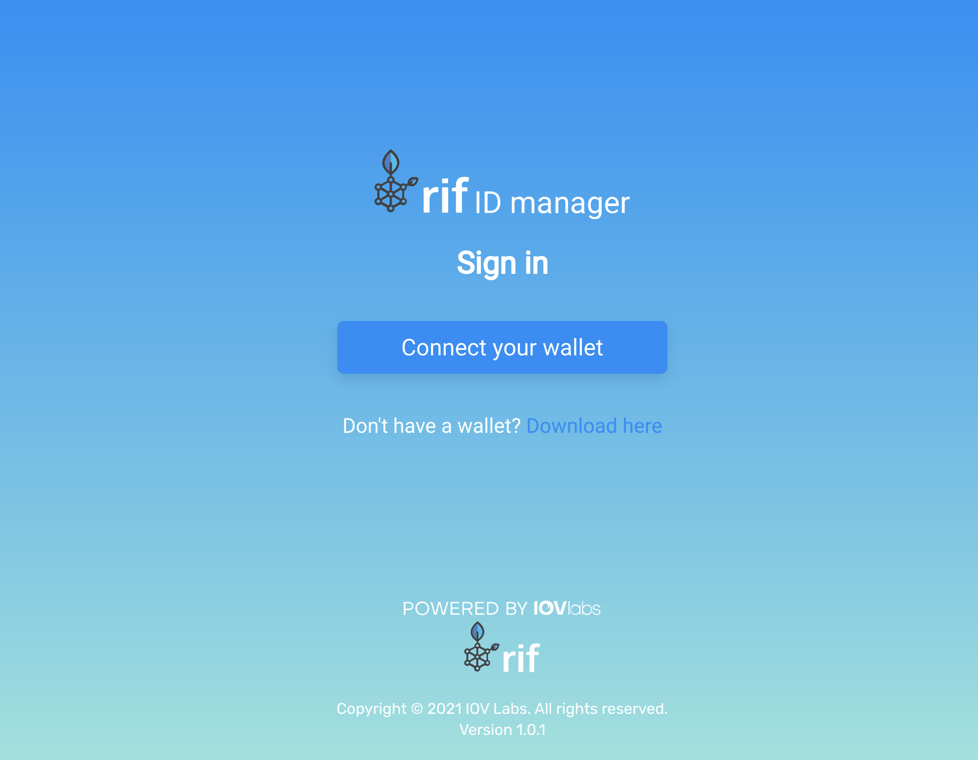 This is where the RIF Identity Manager comes in! This DApp allows you to verify whether we control this address. You'll do this by signing a message that is not a blockchain transaction.